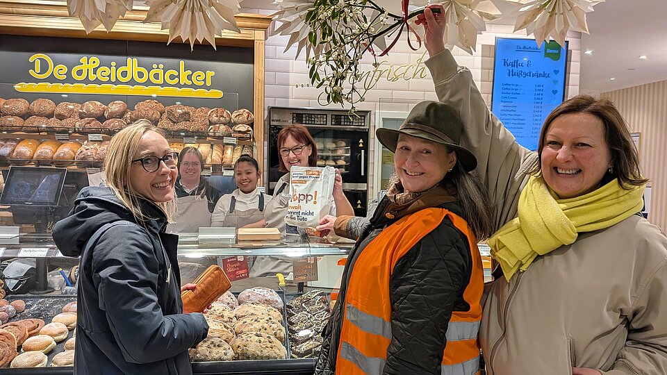 Bereits zum sechsten Mal werden 30.000 bedruckte Bäckertüten seit dem Internationalen Tag gegen Gewalt an Frauen am 25.11. in allen Bäckereifilialen Harms in Stadt und Landkreis Lüneburg ausgegeben.